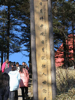 On Friday, we all woke up at 7 am, got dressed, and went downstairs for breakfast. Jared and Kevin got ready before us and had coupons for a free breakfast so they went downstairs before us girls did. When we got to the dining area, Kevin and Jared were just leaving. We asked them how the breakfast was and they said it wasn't great. We still had to eat something, so we decided to give it a try. It really wasn't very good. The breakfast (which was cold already) consisted of hard boiled eggs, red beet or regular baozi, roasted peanuts, cabbage, some other nasty stuff that I don't know the name of, and rice porridge or something like that. I only ate the peanuts and the three baozi I had. After breakfast, we returned to our room, finished getting ready and packing up all of our stuff, and checked out of the hotel. We walked to the tram that lead to the peak of the mountain and bought tickets. We waited in line and then rode the tram up for about 30-45 minutes.